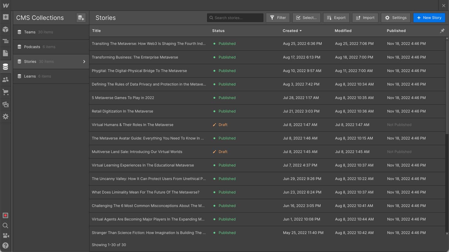 Team Empowerment: Content teams independently published articles using Webflow CMS after training